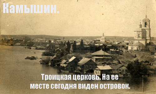 …Мое детство и юность прошли в Камышине. Поделюсь тем, что я помню о храме и островке в бухте. Во-первых, это был не остров, а земляная стрелка, выдававшаяся в речку Камышинку. Здесь стояла не церковь, а большой собор. С высоким резным крыльцом, он как белый лебедь стоял красиво и величаво. Мне в детстве до войны, в 1937–38 годах, приходилось бывать в этом соборе. В нем не проводилось церковных служб, а был только сторож дядя Гриша и большой замок висел на двери собора.