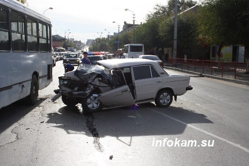 Сегодня, 22 октября, около 14:30 в Камышине на улице Пролетарской произошло дорожно-транспортное происшествие. На въезде на Бородинский мост столкнулись ВАЗ-2106 и рейсовый автобус.