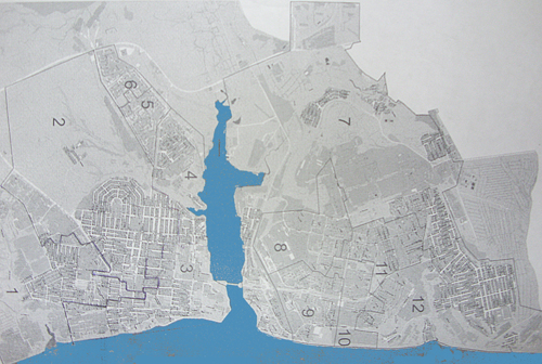 В нынешней думе, как мы знаем, действует другая пропорция, поэтому избирательные округа укрупнились. Как — можно посмотреть на этом фотоснимке. В основном объединение проходило из соображений географического соседства. Самый большой по численности избирателей округ (около 8 тысяч избирателей) - поселок нефтебазы. А вот в районе бухты есть округа примерно по 6 с половиной тысяч избирателей. Депутатов, победивших по одномандатным округам, в новой думе будет 12.